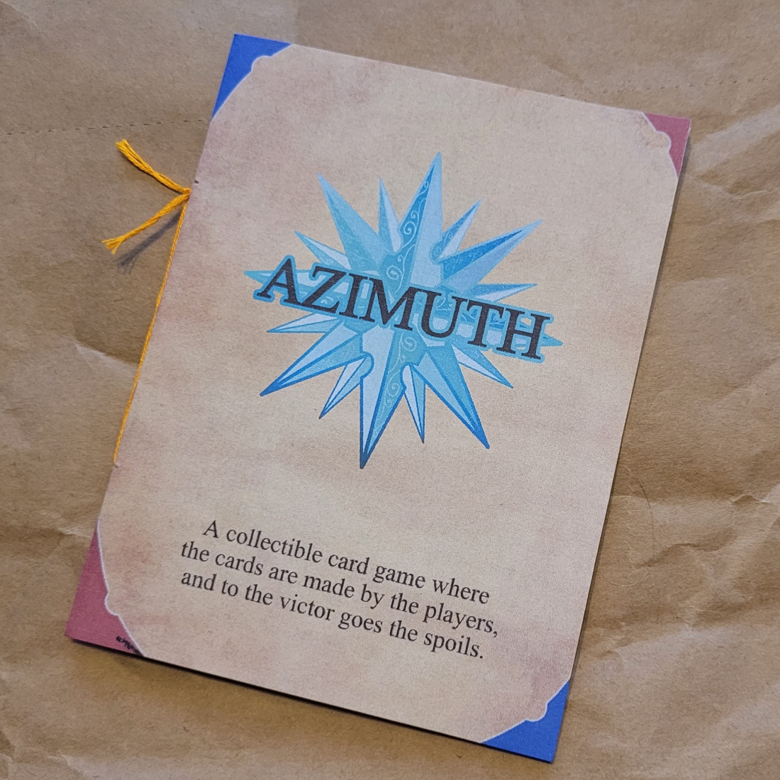 Azimuth was inspired heavily by the minigame Triple Triad in Final Fantasy 8. I wanted to make a game that had a low barrier to entry, a reasonably high skill ceiling, and something people anywhere could start as soon as they learned of it. Most importantly, I wanted to capture the feeling of being able to challenge and play with anyone and everyone, and because you make your own cards from anything you want, anyone can make a deck and start playing in minutes.